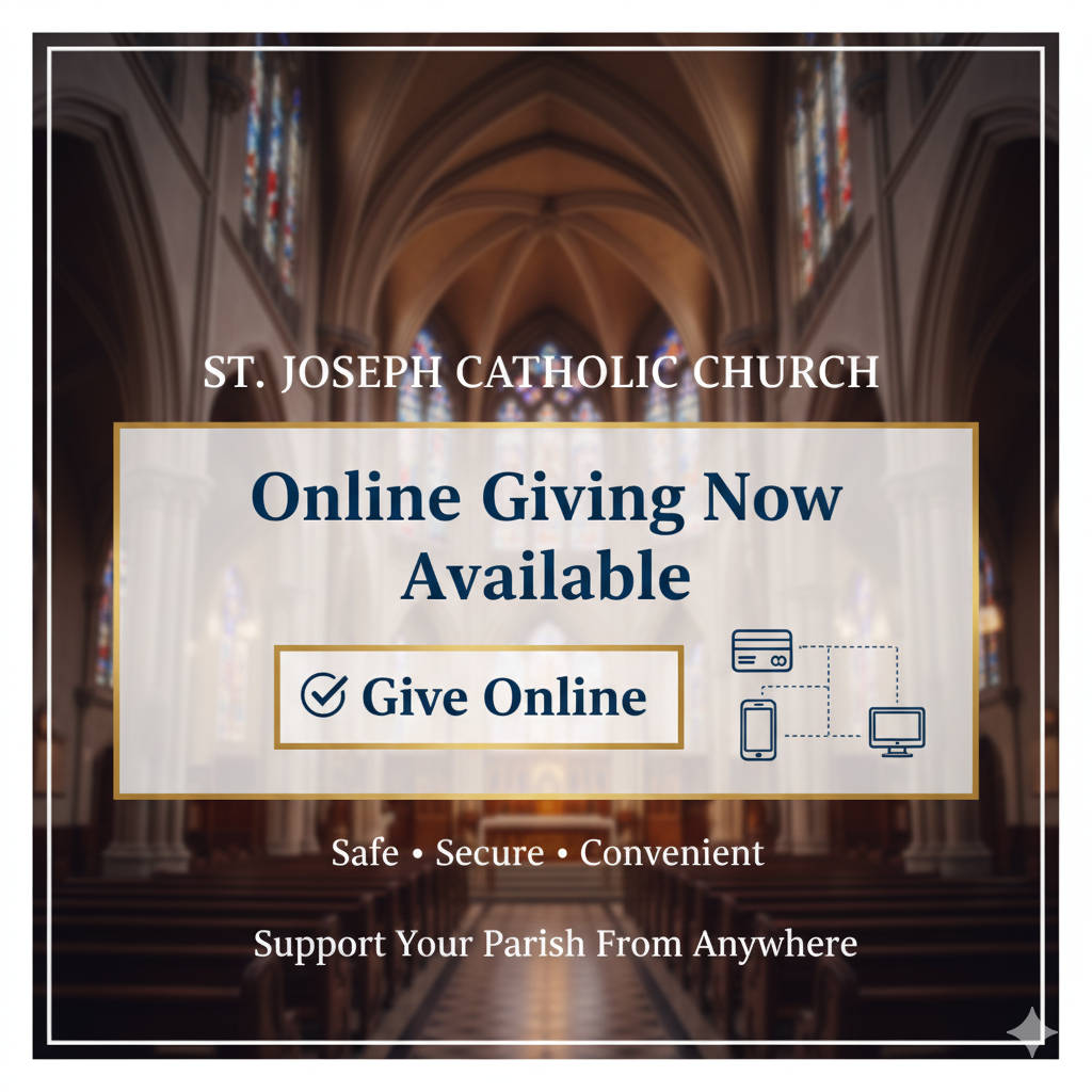 All online gifts are processed through trusted third-party payment providers using secure encryption technology. St. Joseph Catholic Church does not store your credit card or bank account information on our servers.